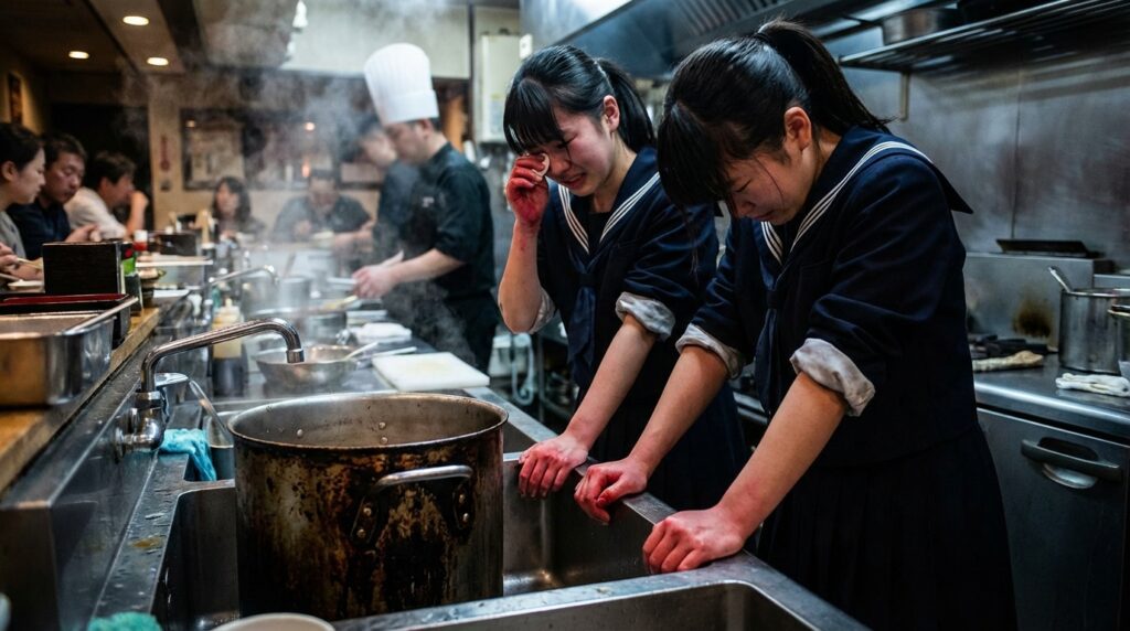 然而,店家的這份「教育」心意,在兩名女高中生看來卻是無法接受的羞辱與體罰。事發後,兩名學生向媒體投訴,語氣中充滿委屈。她們表示,當天被店家要求拿著鋼絲球,在廚房流理台前奮力刷洗那口頑強的焦鍋,整個過程持續了10至20分鐘。