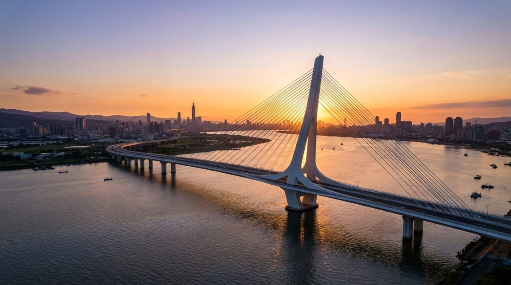 淡江大橋即將完工!這座由 Zaha Hadid 團隊設計的全球最長單塔斜張橋,如何兼顧淡水夕照美景與工程難度?本文詳細解析淡江大橋的建築美學、通車效益與攝影亮點。立即了解這座北台灣最新地標的迷人之處!