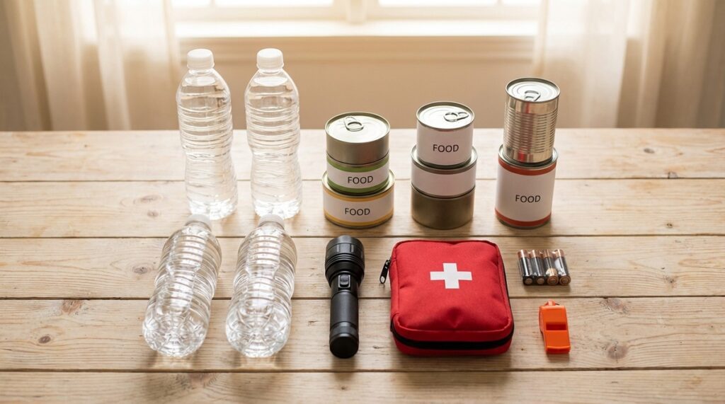 | 飲食飲水 | 瓶裝水(每人 3 天份)、高熱量餅乾、巧克力、罐頭 | 能量果凍、真空包裝米飯、維他命 C、長輩流質食品、嬰兒奶粉與副食品 |