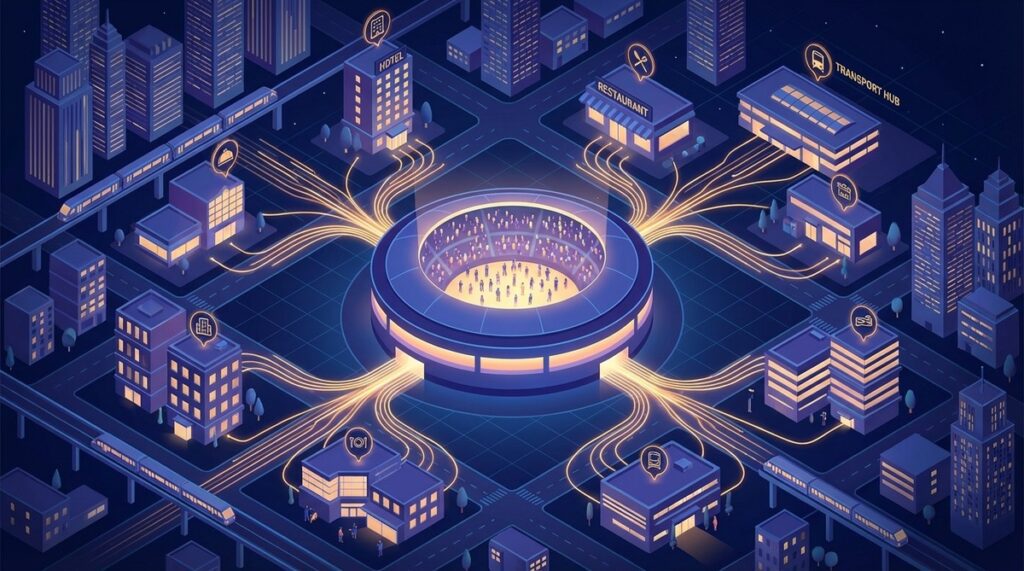 當數萬名粉絲(Fans)湧入一座城市,他們的需求遠不止於觀賞演出。從跨國或跨縣市的交通移動、演出前後的住宿安排,到在地的餐飲消費與周邊商品(Merchandise)購買,這是一條完整的消費供應鏈。